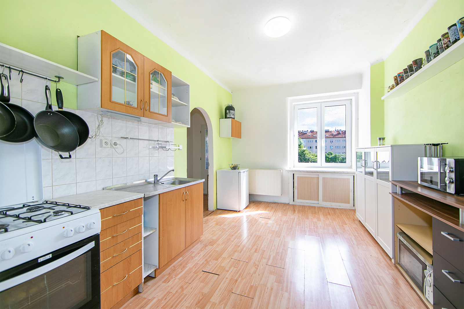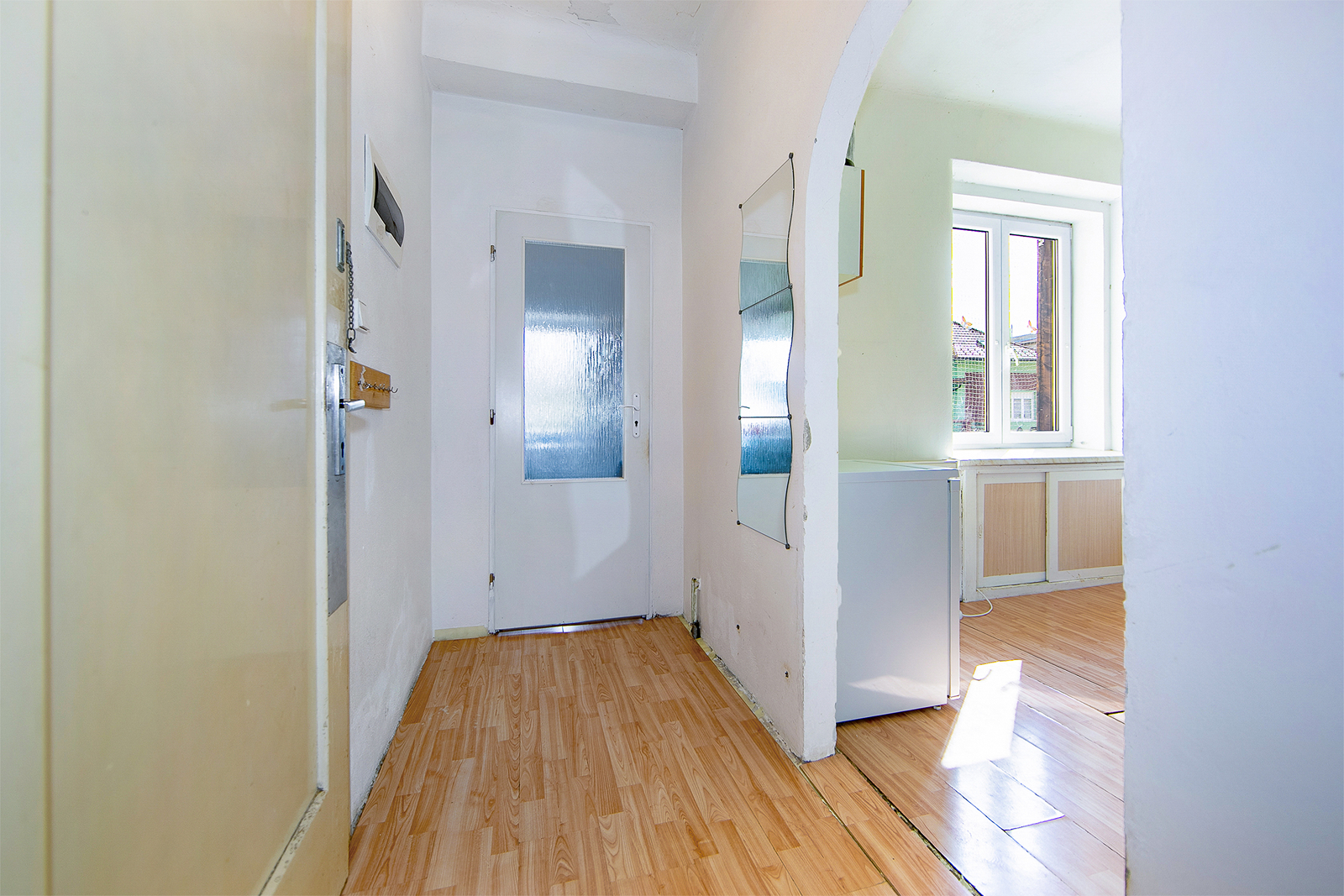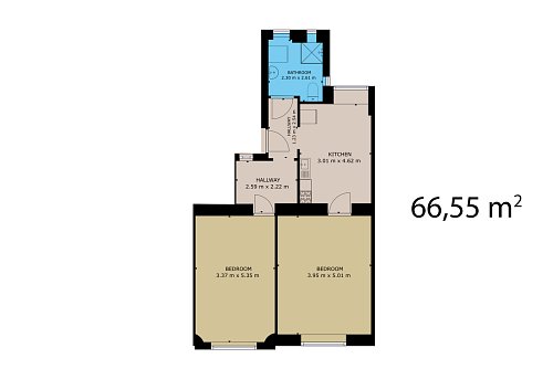 Byt má , dle prohlášení vlastníka, 66,69 m² Po vstupu se dostanete do chodby, ze které dále vstoupíte do kuchyně, koupelny s WC a pokoje. Z kuchyně se dostanete do druhého pokoje. Teplo a teplou vodu zajišťuje plynový kotel. Vodovod je z veřejného řadu a i kanalizace je veřejná.