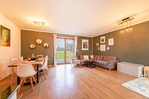 Celková užitná plocha domu činí 117 m², plocha domu je 86 m² a plocha parcely je 745 m², což poskytuje dostatek prostoru pro relaxaci na zahradě a možnost různých venkovních aktivit. Dům se nachází ve velmi dobrém stavu, což zajišťuje komfort a příjemné bydlení. Vytápění a teplou užitkovou vodu zajišťuje tepelné čerpadlo, dům je napojen na veřejný vodovod a kanalizaci.